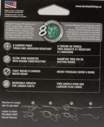 • Шнур Berkley Whiplash 8 Yellow 300м 0,08мм