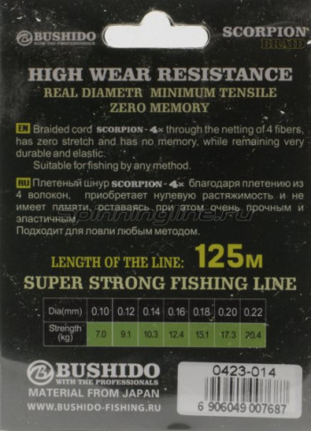Шнур Bushido Scorpion X4 125м 0,26мм