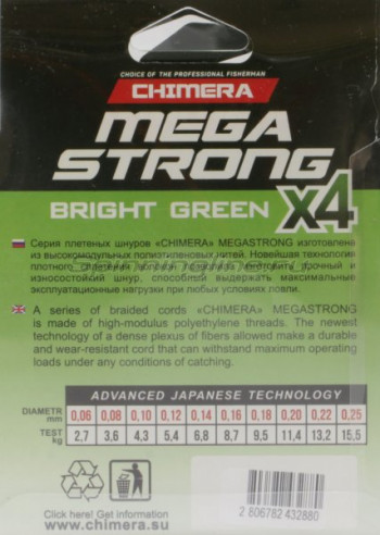 Шнур Chimera Megastrong Х4 100м 0,12мм Bright Green